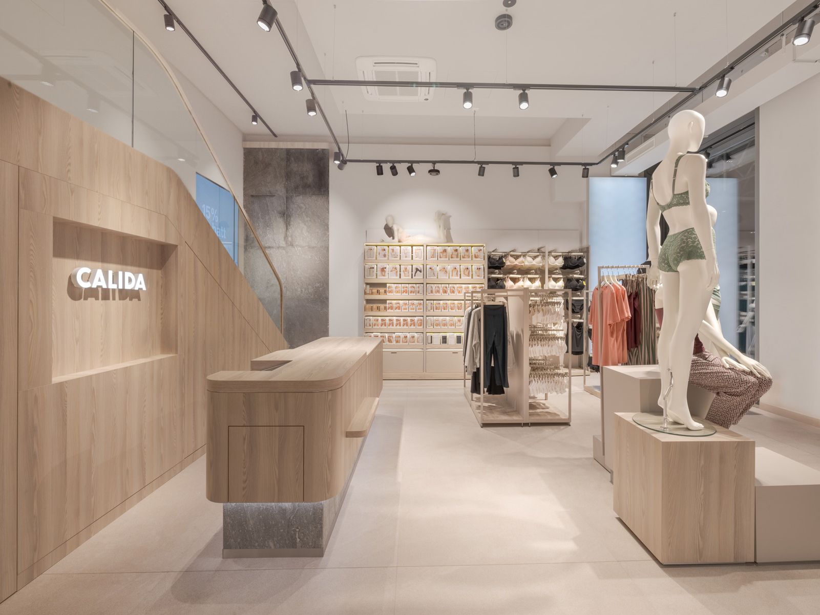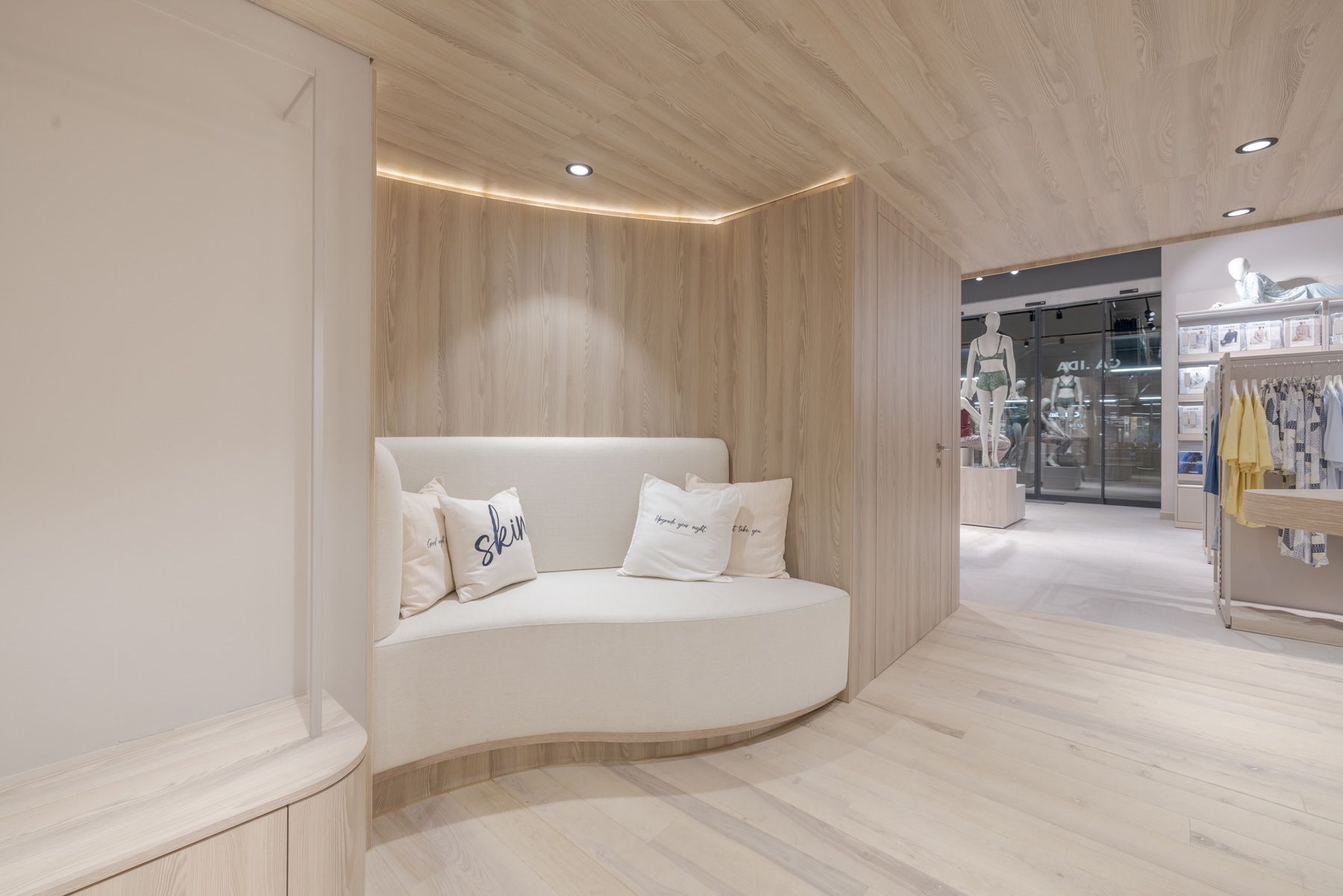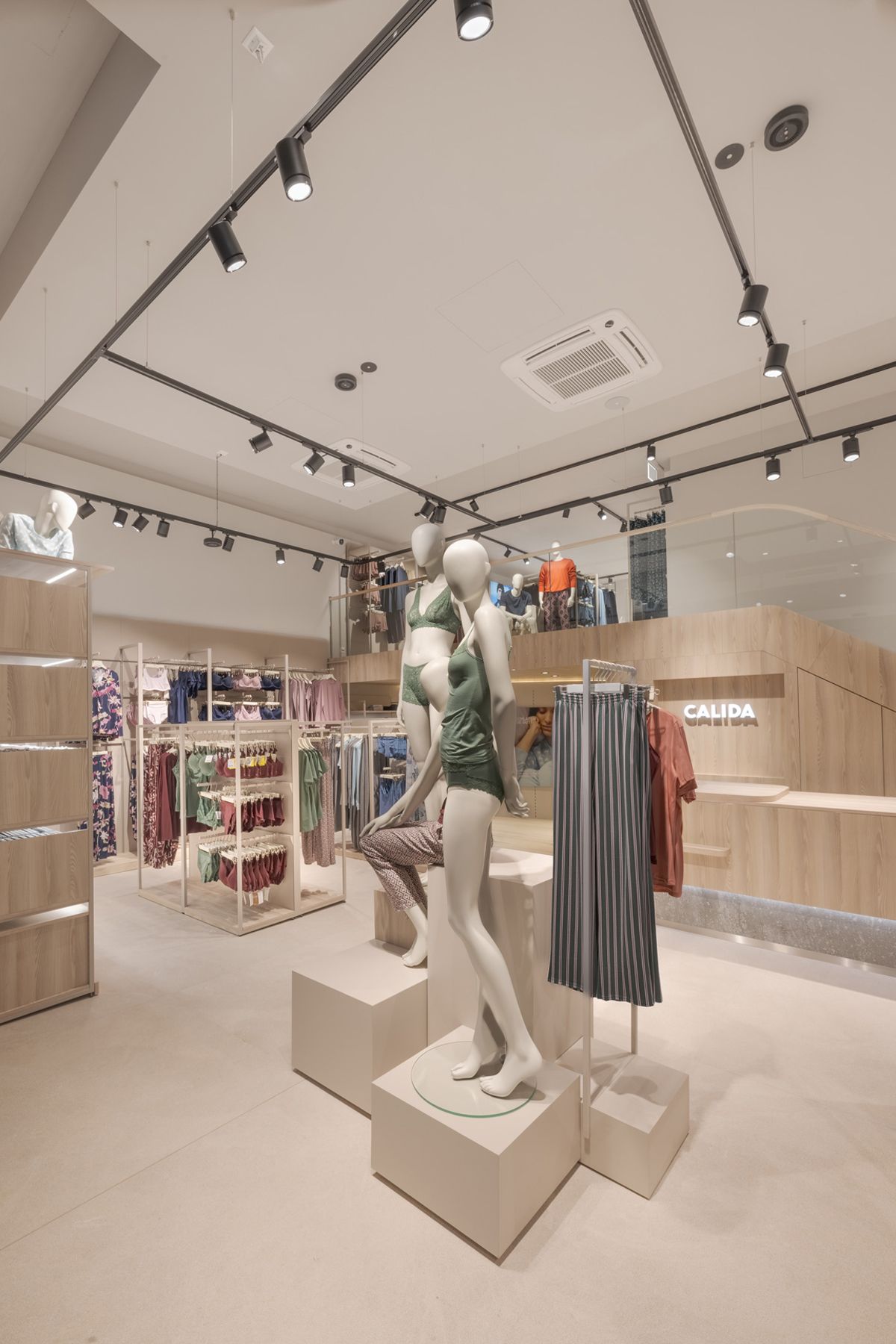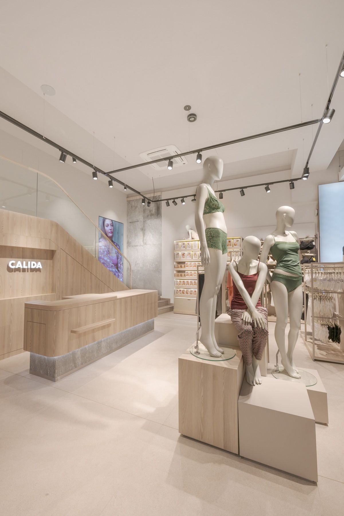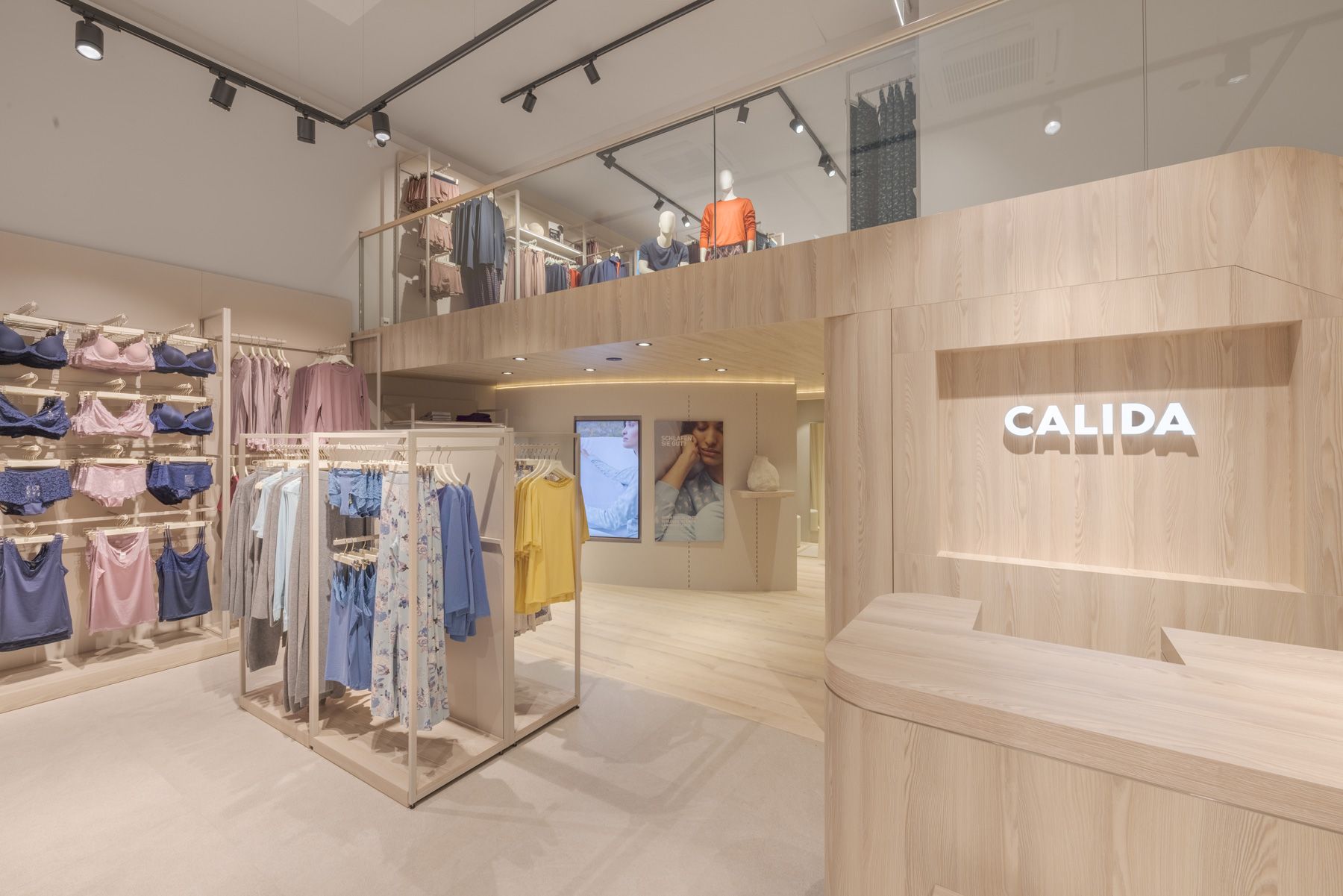 Every design element—from the serene color palette to thoughtfully curated lighting—was carefully selected to create an exclusive yet inviting atmosphere. The layout is both welcoming and refined, encouraging customers to engage with Calida’s premium textiles in a space that feels peaceful and inspiring.