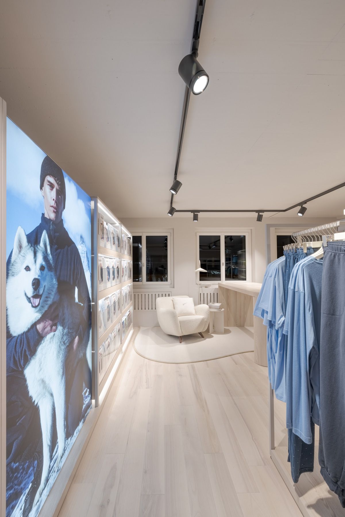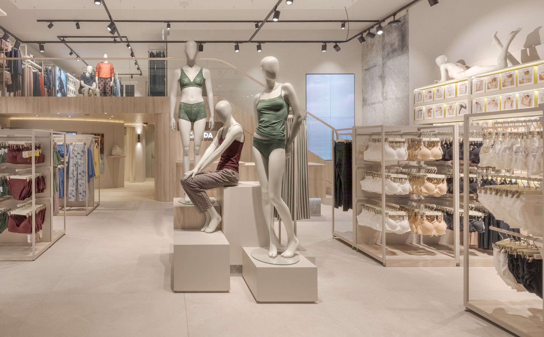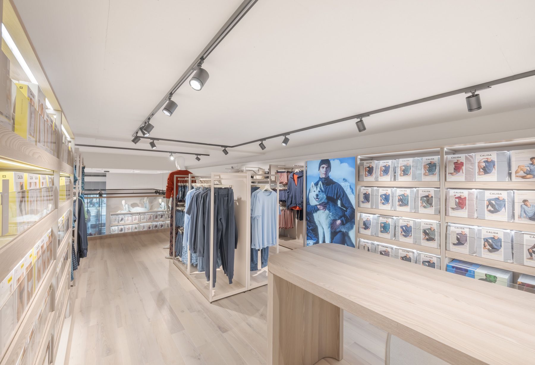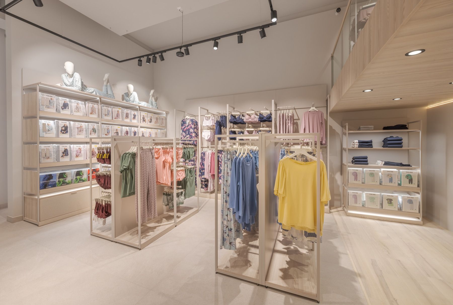 Every design element—from the serene color palette to thoughtfully curated lighting—was carefully selected to create an exclusive yet inviting atmosphere. The layout is both welcoming and refined, encouraging customers to engage with Calida’s premium textiles in a space that feels peaceful and inspiring.