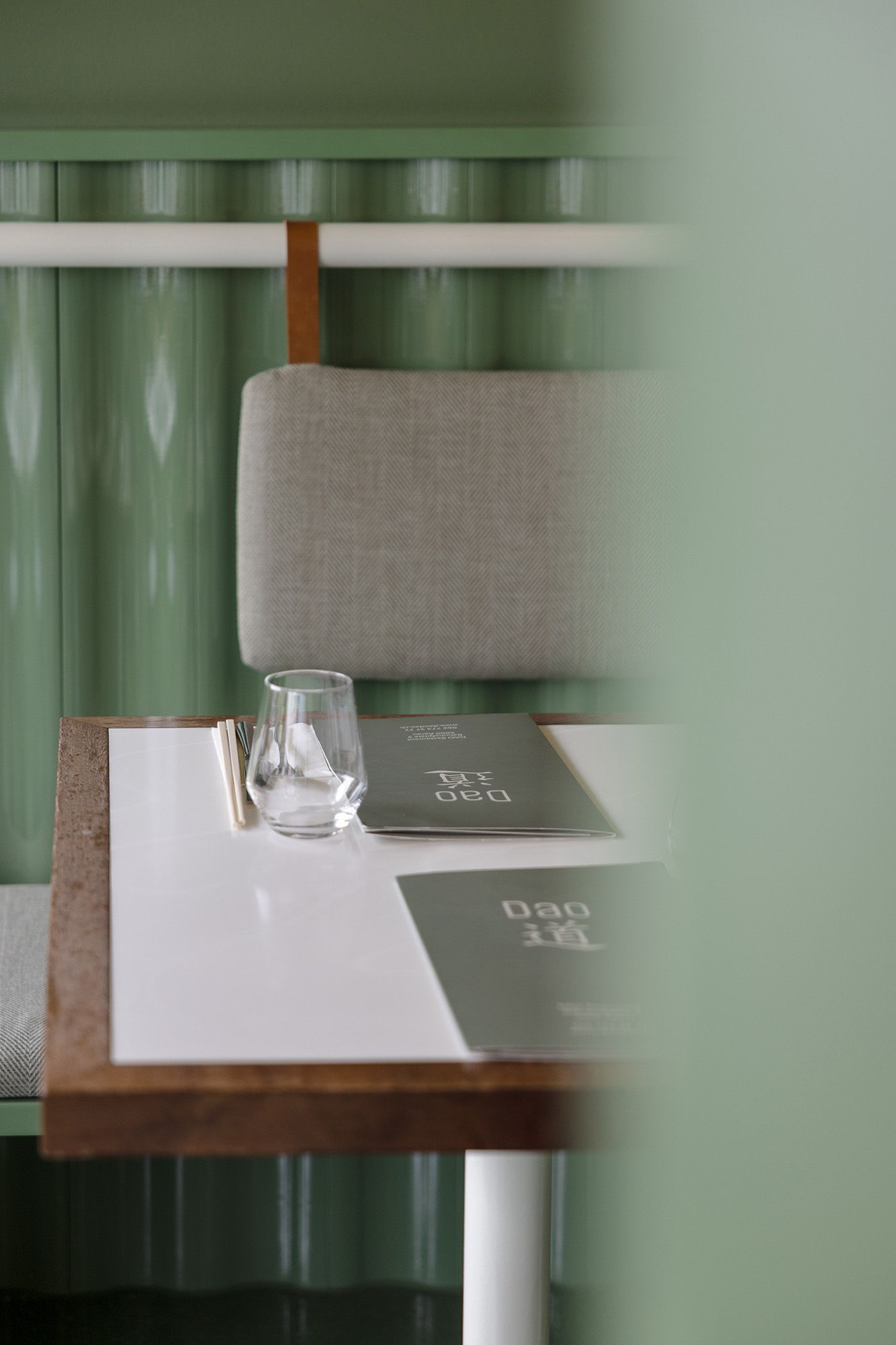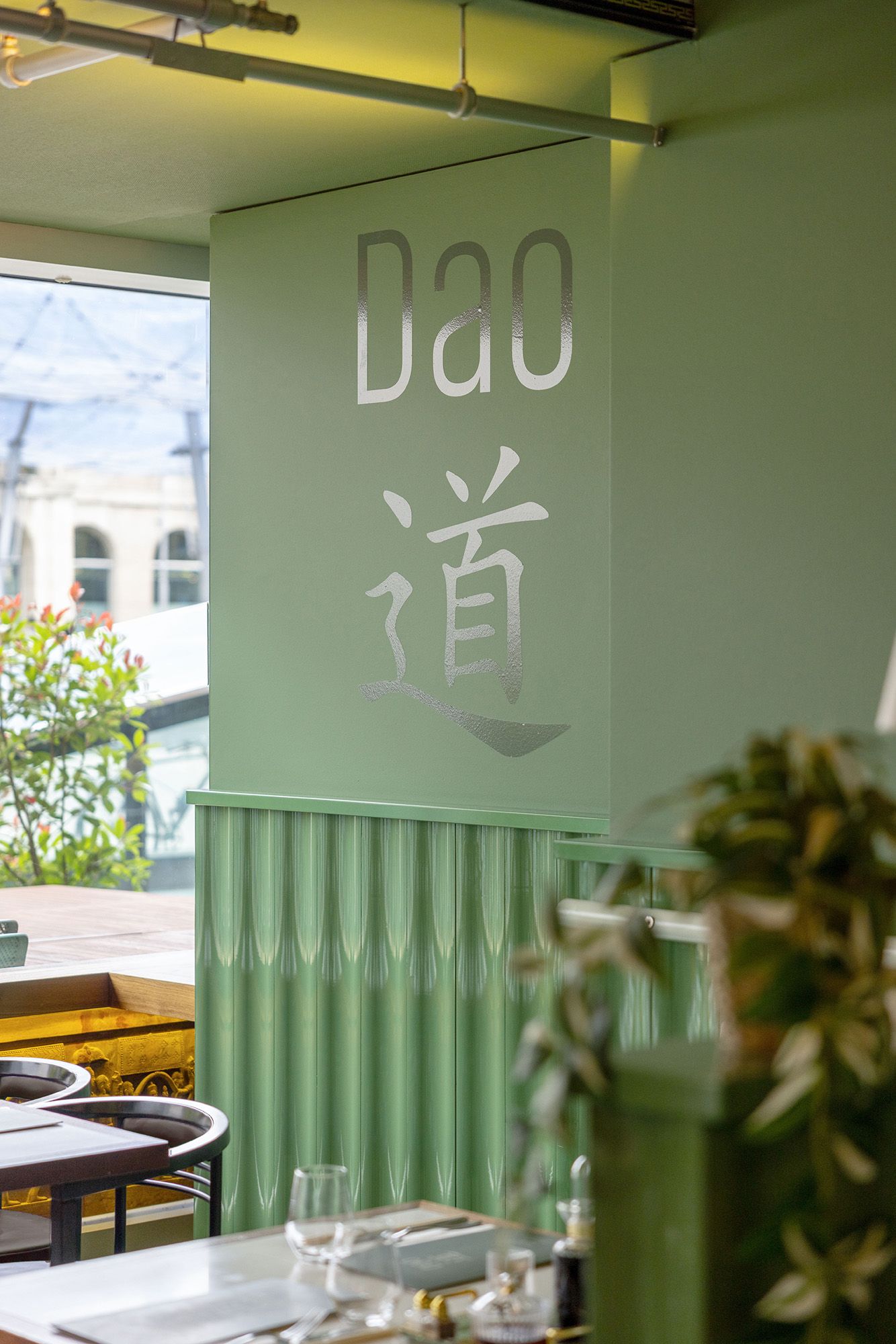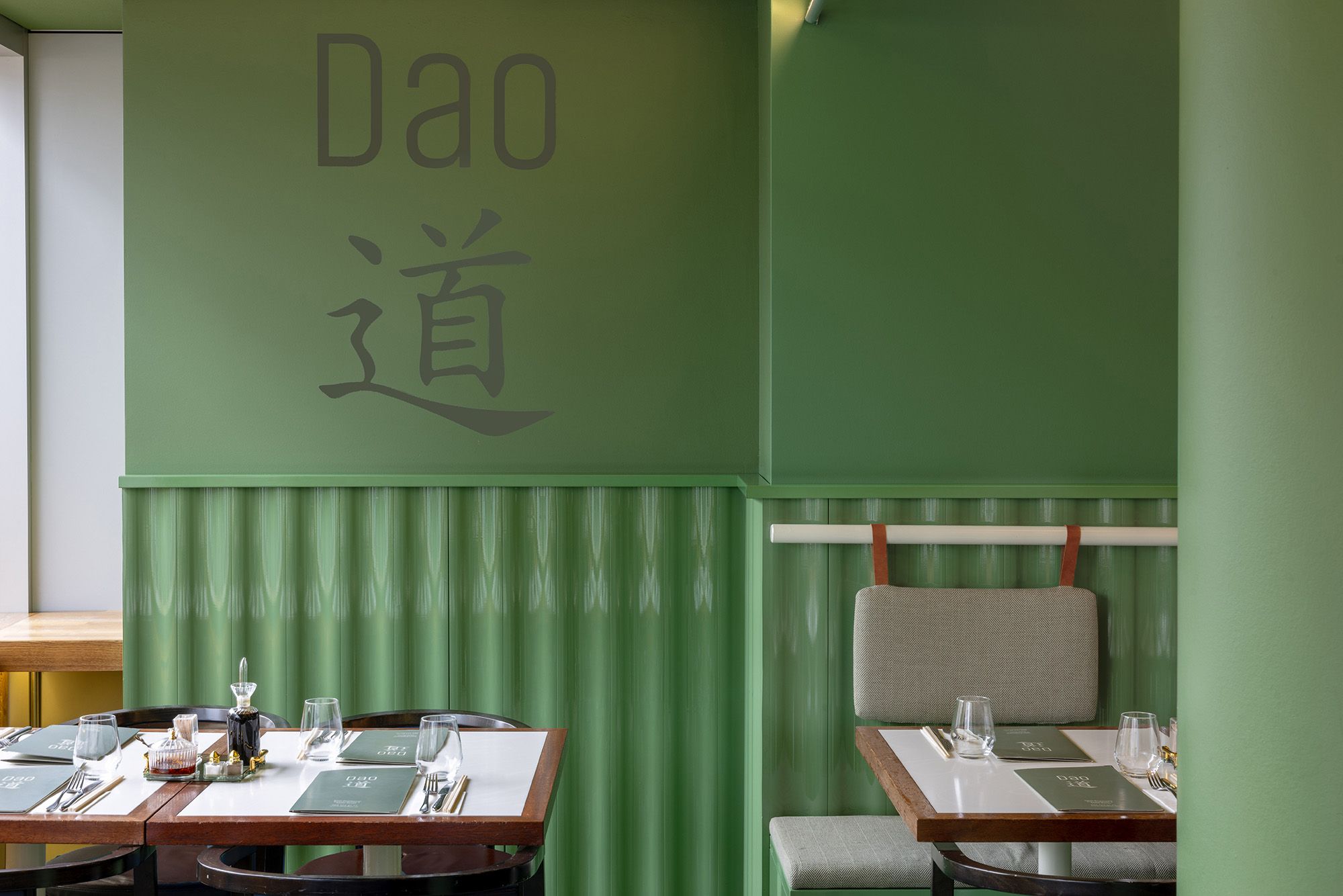 DAO is an innovative pan-Asian restaurant chain, distinguished by its monochromatic green color palette. The design is captivating, featuring a mix of matte and glossy surfaces that make both the takeaway and dining areas visually striking.